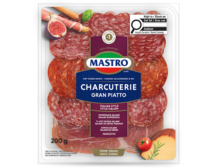 ✦ The Mastro® and San Daniele® Gran Piatto offers a range of our bestselling cured deli meats in a larger package to fill your board: Genoa Salami, Hot Genoa Salami, Soppressata Salami and Prosciutto.